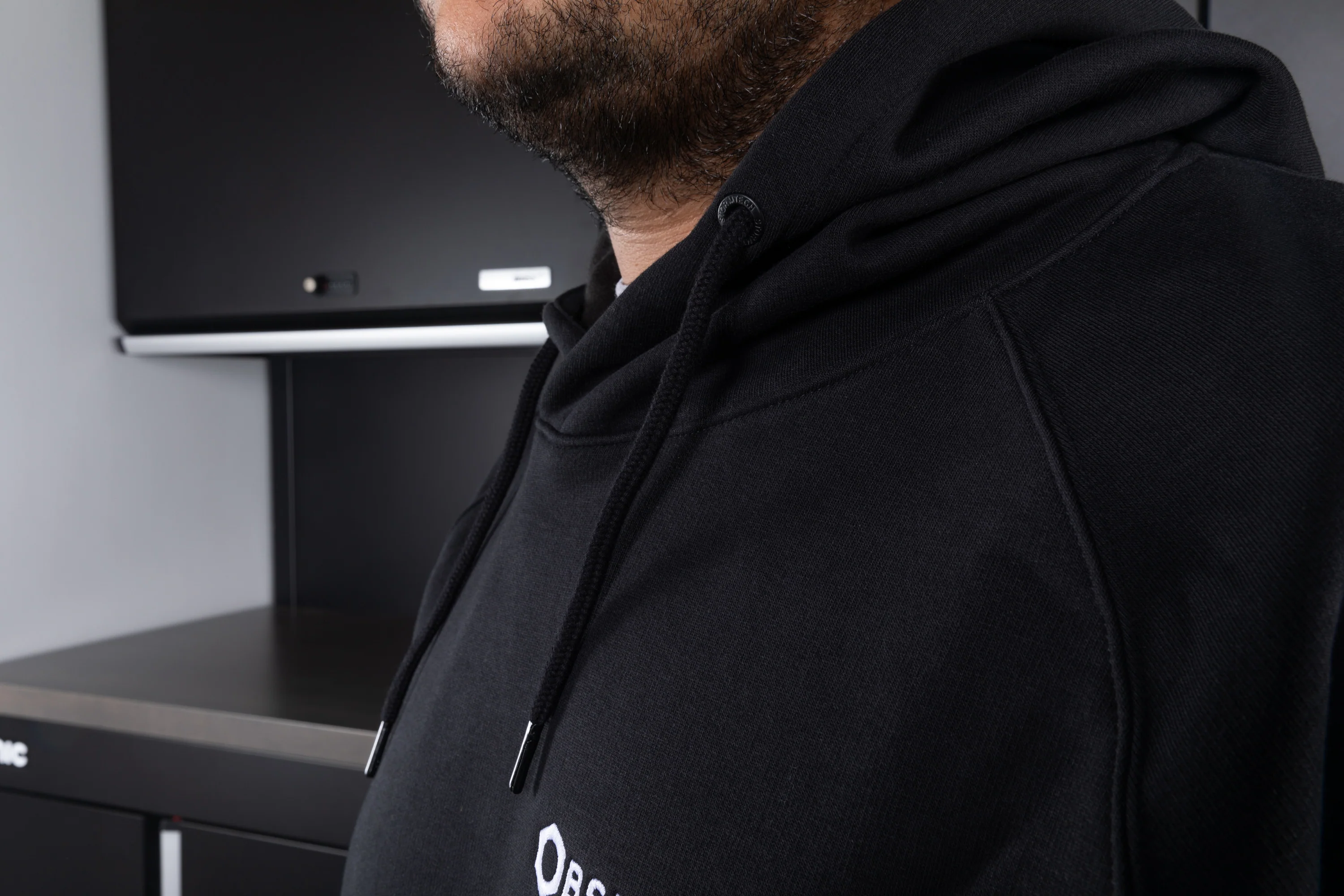Our version of the Stormtech Omega pullover hoodie has a simple and clean Obsessed Garage logo embroidered on the left breast area of the hoodie.
